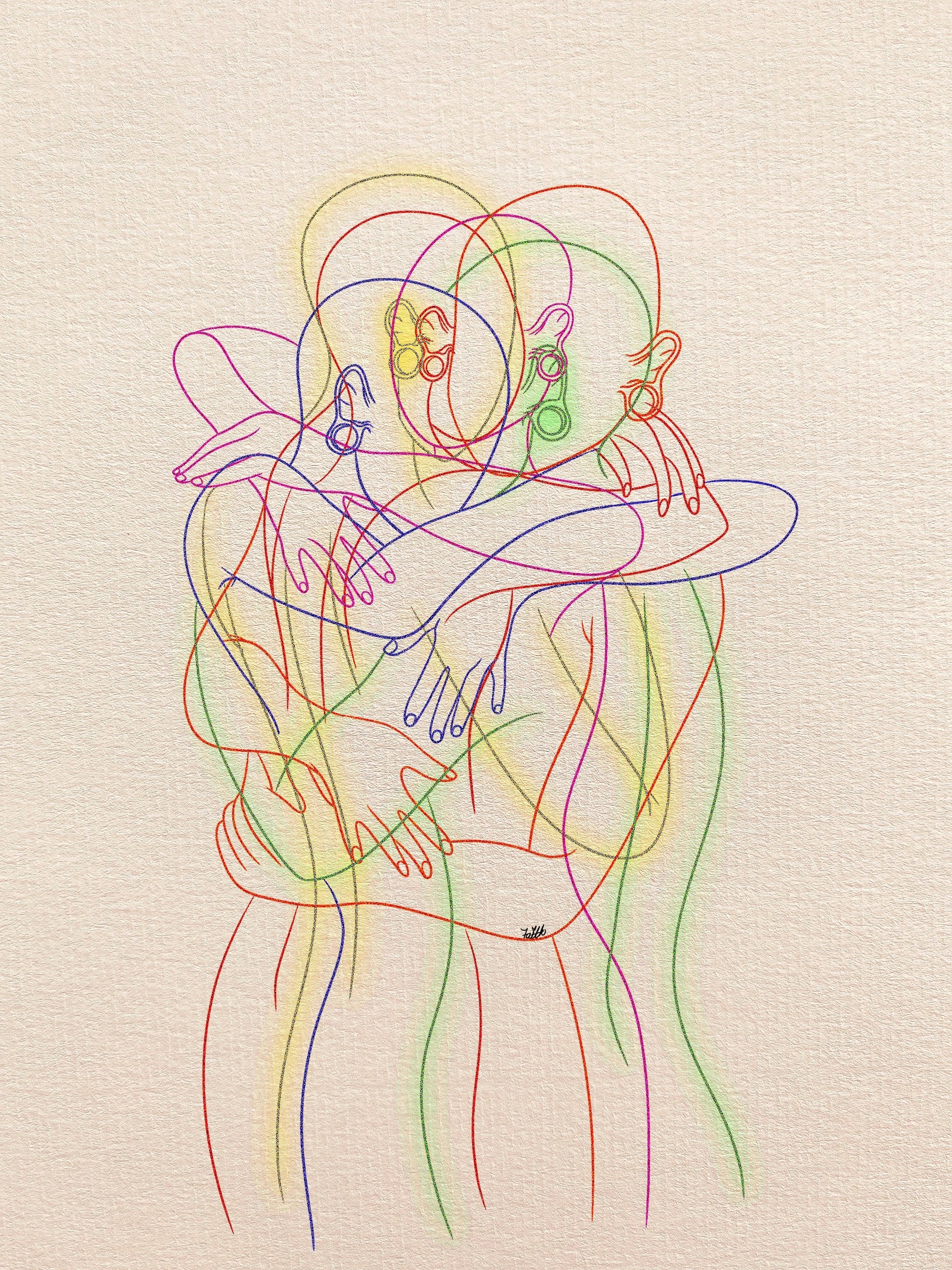 Stripping away excess detail and focusing on essential elements, the minimalist drawings of FaithLove made us feel they distill emotions to their purest forms, inviting viewers to engage in a contemplative dialogue with the essence of the depicted feelings. Through the intentional deployment of sparse lines, shapes, and negative space, FaithLove masterfully wields the potency of restraint, allowing emotions to articulate themselves through the elegance of simplicity rather than abundance. We felt like this intentional reduction not only fosters a sense of visual clarity but also encouraged us to have a profound connection with her emotional intent, facilitating an intimate artistic experience.
