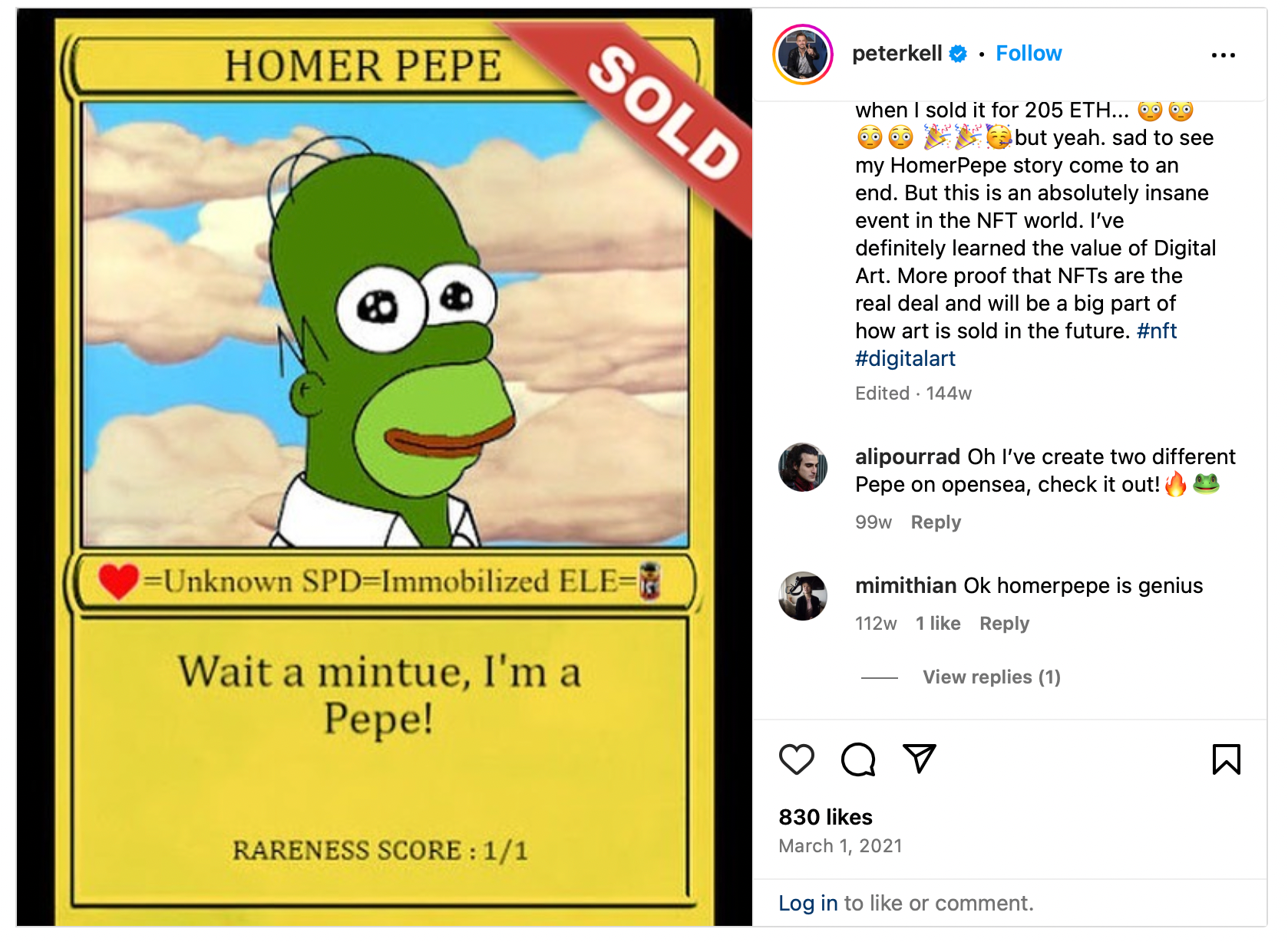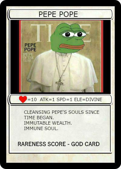 The Rare Pepe project ultimately evolved into a collection of collectible digital trading cards that explore the life of the irresistibly memetic Pepe. In 2021, history came full circle for the Rare Pepe community when Matt Furie created his own Rare Pepe card, ''FEELSGOODMAN'', emphasizing the enduring impact of the project.