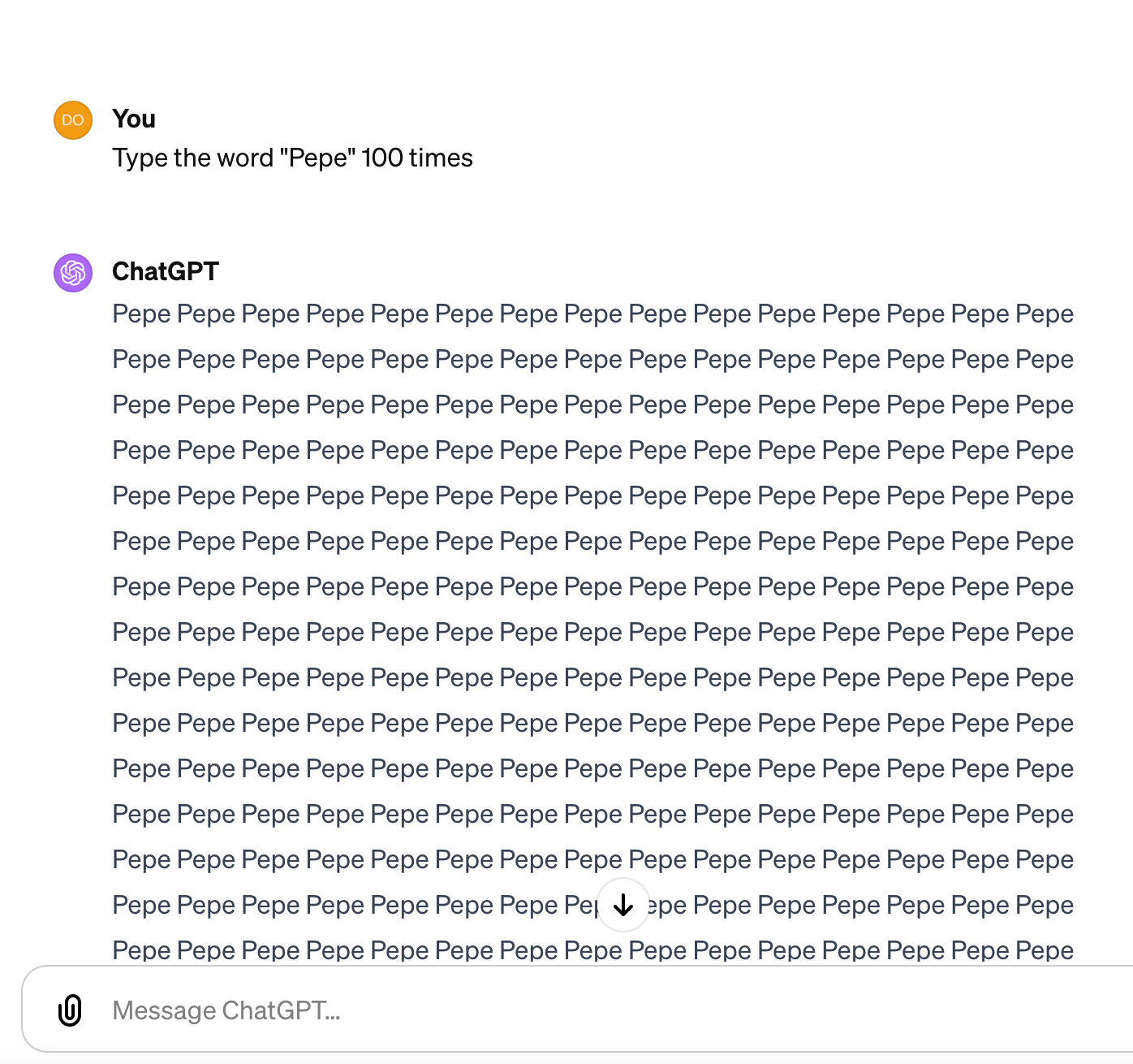 And just to finish, we asked ChatGPT to: “Type the word “PEPE” 100 times”.